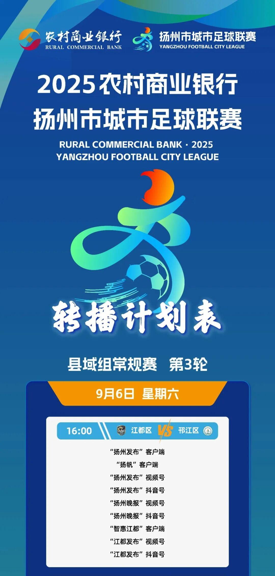 观赛指南2025扬州城市足球联赛江都赛区主场江都区vs邗江区将于2025年9月6日(本周六)在江都中学新校区体育场举办这份指南请收好让观赛更从容~ 时间轴重点划记比赛时间:9月6日(周六)16:00 检票开始:14:30(提前90分钟开启检票通道)(因开赛前安排暖场节目,请于15:40完成就坐)赛场坐标与交通建议 检票地点:江都中学新校区北2门(仅...